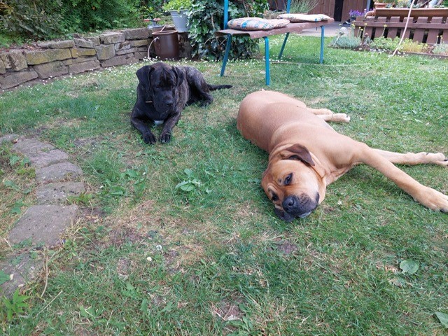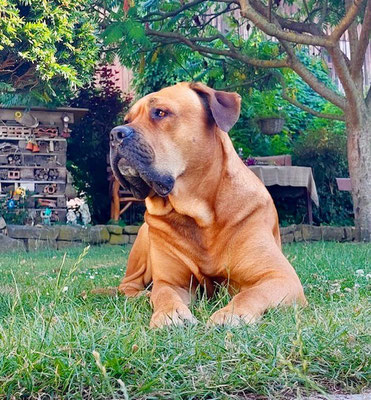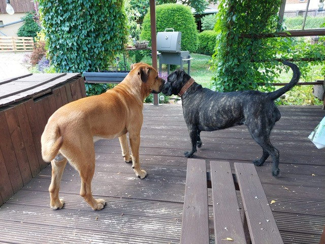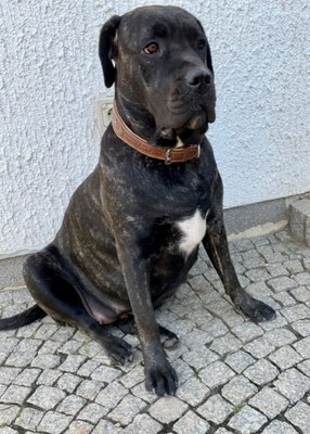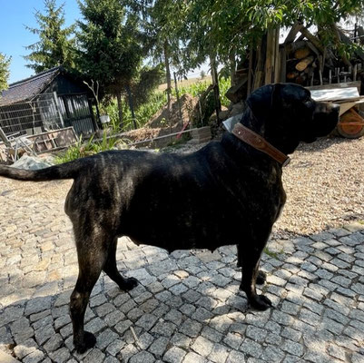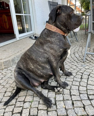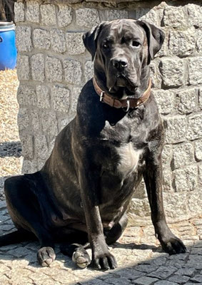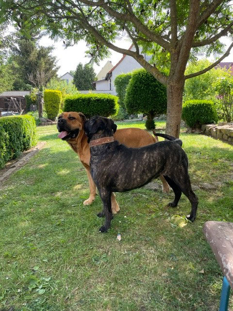 Eine spritzigere Variante der Romaner Antikdogge vereint sich in unserer Nachzuchthündin Elif aus unserem E-Wurf mit Alanis vom Sax und Iwan de la Teutones. Sie zeichnet sich aus durch ein gutes Selbstbewusstsein und Führungsqualitäten im Rudel. Wach- und Schutzeigenschaften sind sehr gut ausgeprägt. Der Hang zu Harmonie ist deutlich im Verhalten zu erkennen. Menschen und besonders Kinder werden geliebt. Mit anderen Hunden gibt es sofern keine Probleme, als das diese sich gut benehmen.