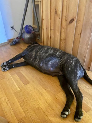 Elif geht es sehr gut, sie schmust unwahrscheinlich viel und ist auch in ihrer Aktion schon etwas gebremst. Das Gesäuge ist minimal vergrößert dennoch hat sie schon 3 kg zugenommen.